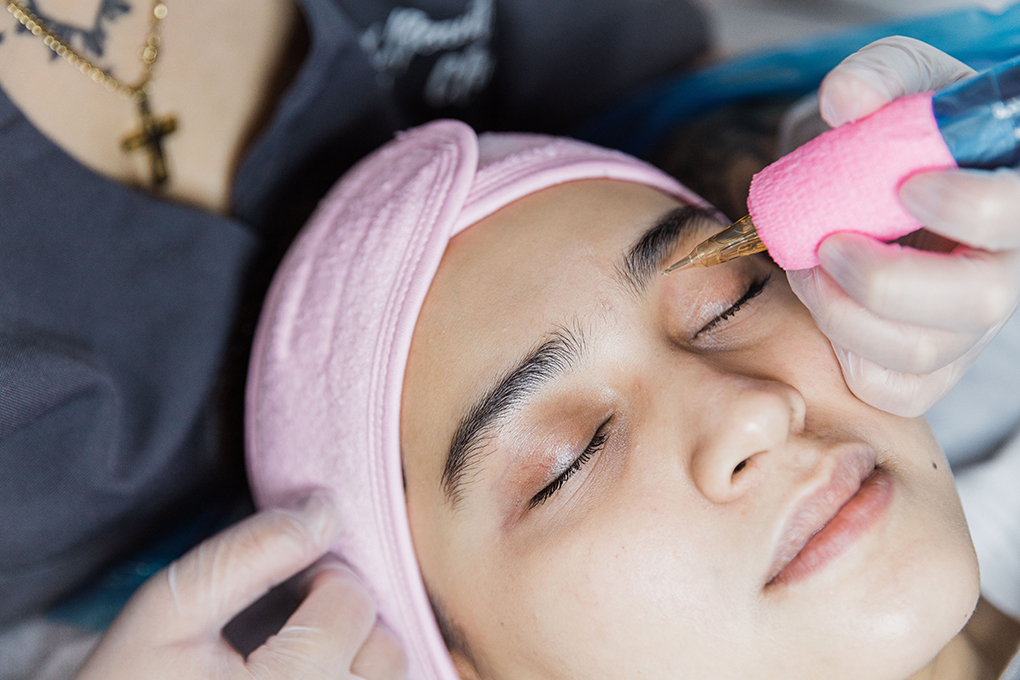 Microblading, or feathering, is a technique where hair strokes are created by manually etching pigment into the skin.